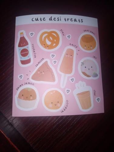 This adorable, pastel sticker set includes a variety of desi treats: samosa, laddoo, pani puri, jilabi, idli, roohafza, gulab jamun, chai, and kulfi.