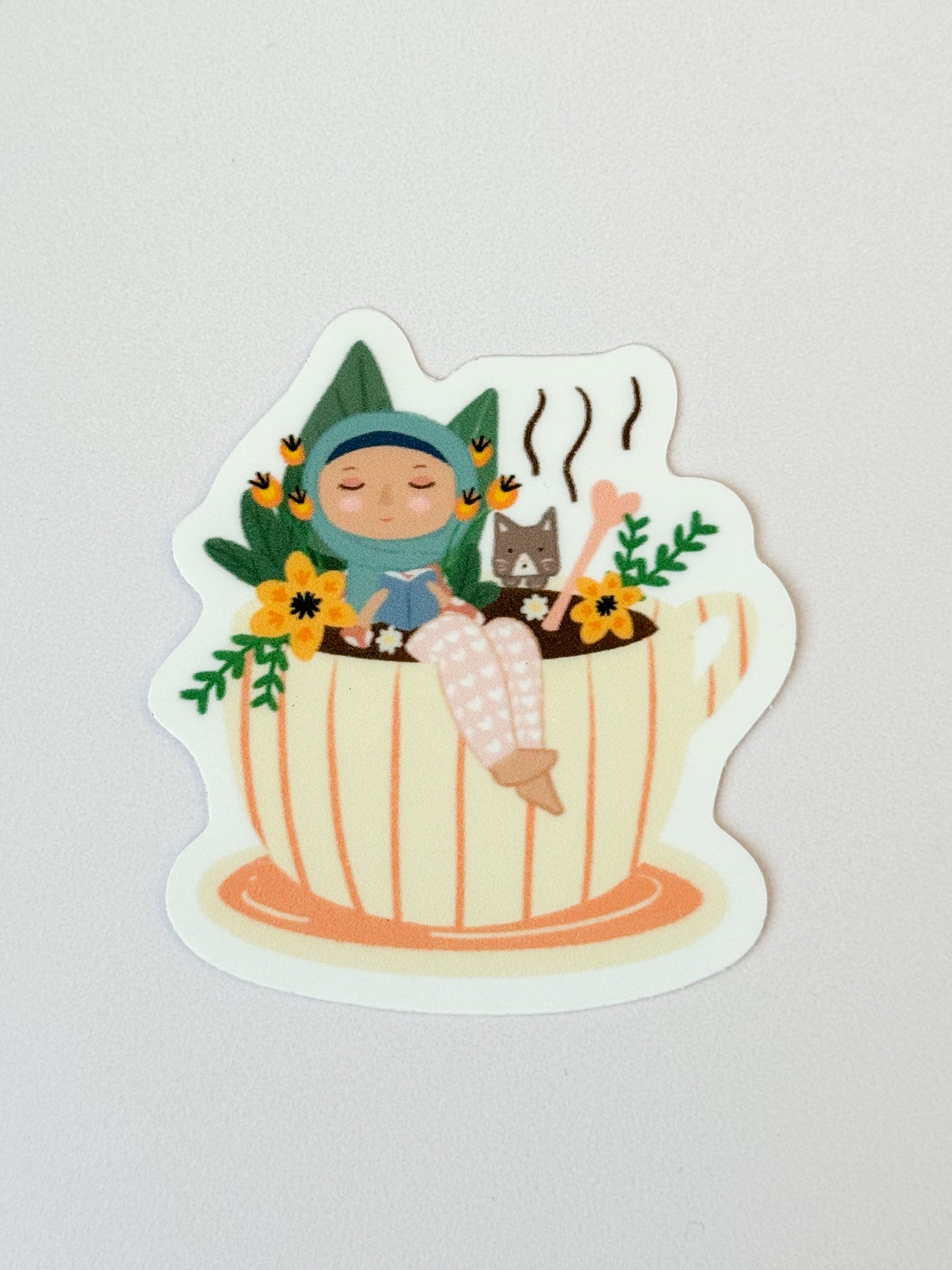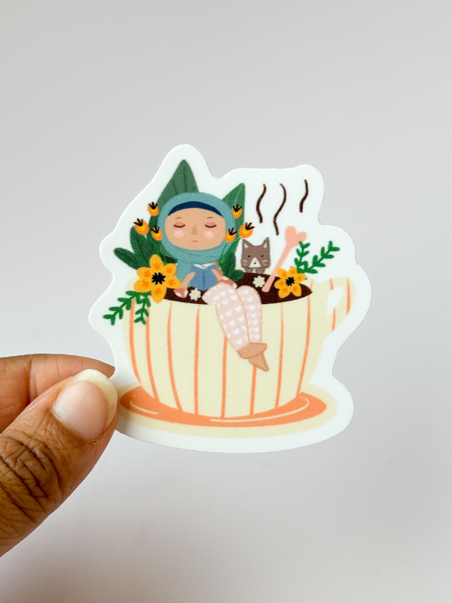 Sticker - Blooming Brew, Hijabi in a Coffee Cup