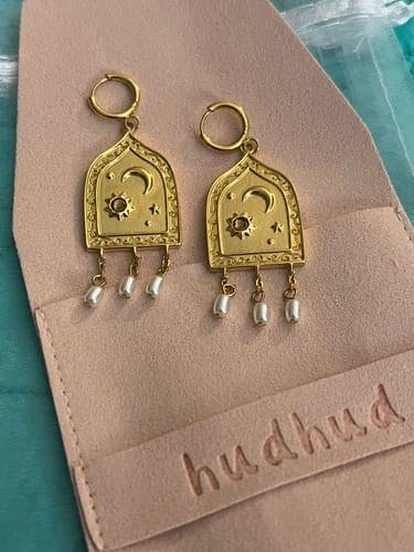 These earrings are even more beautiful in person than in the pictures online! They are not heavy, but you can tell by their weight that they are made with high-quality materials. I didn't even realize there was a yellow gem in the middle of the sun until I received them, which was a pleasant surprise. Overall, I'm super happy with my purchase and plan to recommend Hudhud Creations to everyone I know!!